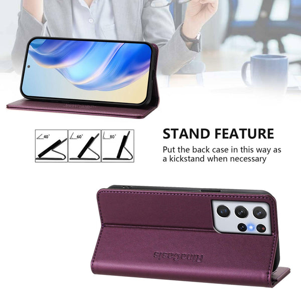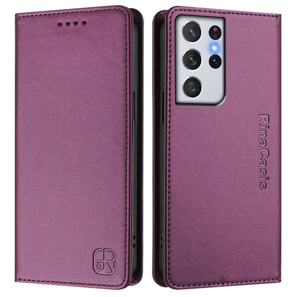 For Samsung Galaxy S21 Ultra 5G RC01 Dual-Folded Magnetic Suction RFID Leather Phone Case(Violet)