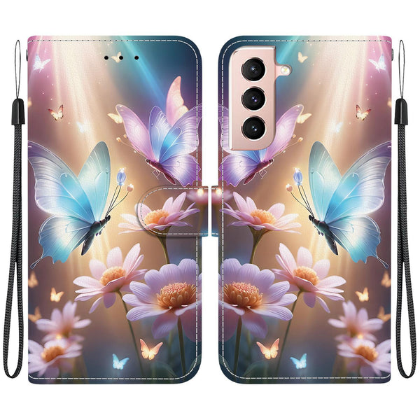 For Samsung Galaxy S22+ 5G Crystal Texture Colored Drawing Leather Phone Case(Butterfly Love Flower)