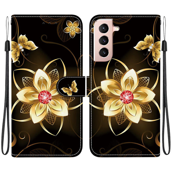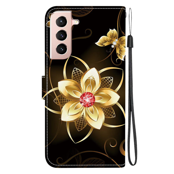 For Samsung Galaxy S22+ 5G Crystal Texture Colored Drawing Leather Phone Case(Gold Flower)