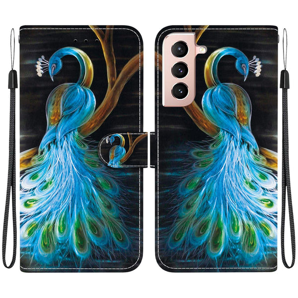 For Samsung Galaxy S22 5G Crystal Texture Colored Drawing Leather Phone Case(Peacock)