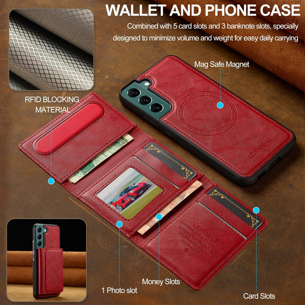 For Samsung Galaxy S22 5G LC.IMEEKE L5 Series Detachable RFID Card Bag Magsafe Phone Case(Red)