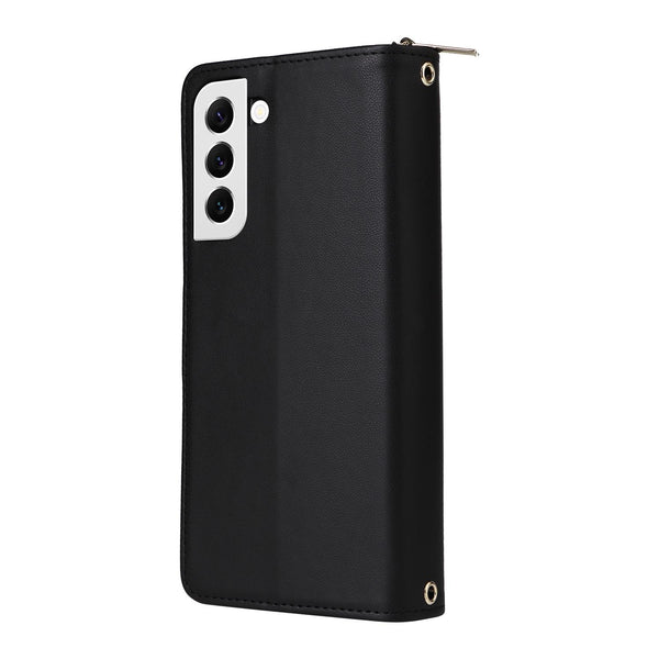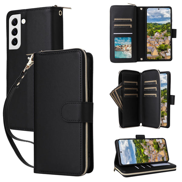 For Samsung Galaxy S22 5G Nine-card Slots Zipper Wallet Bag Leather Phone Case(Black)