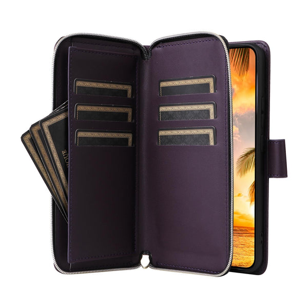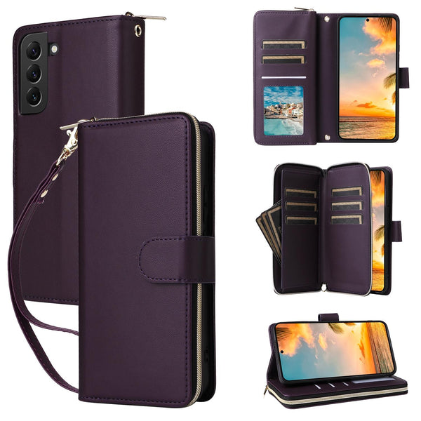 For Samsung Galaxy S22+ 5G Nine-card Slots Zipper Wallet Bag Leather Phone Case(Dark Purple)