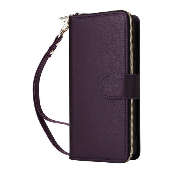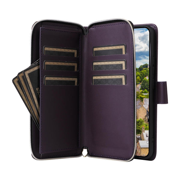 For Samsung Galaxy S22 5G Nine-card Slots Zipper Wallet Bag Leather Phone Case(Dark Purple)