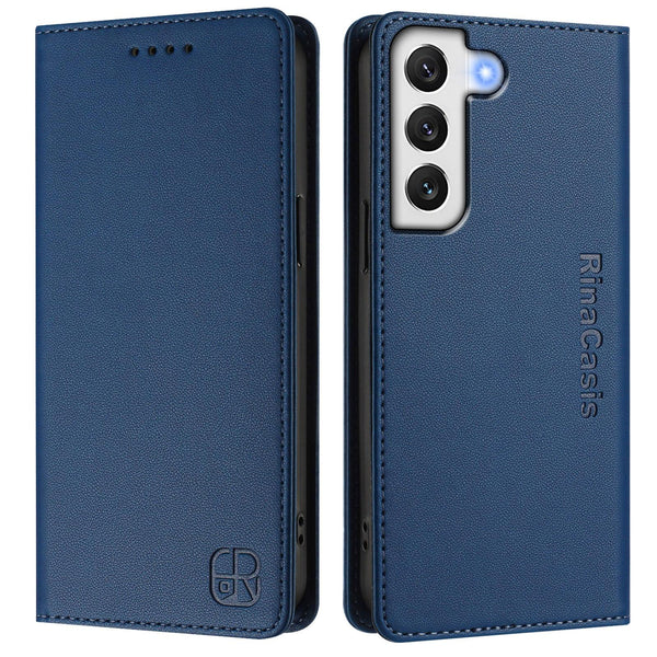 For Samsung Galaxy S22 5G RC01 Dual-Folded Magnetic Suction RFID Leather Phone Case(Dark Blue)