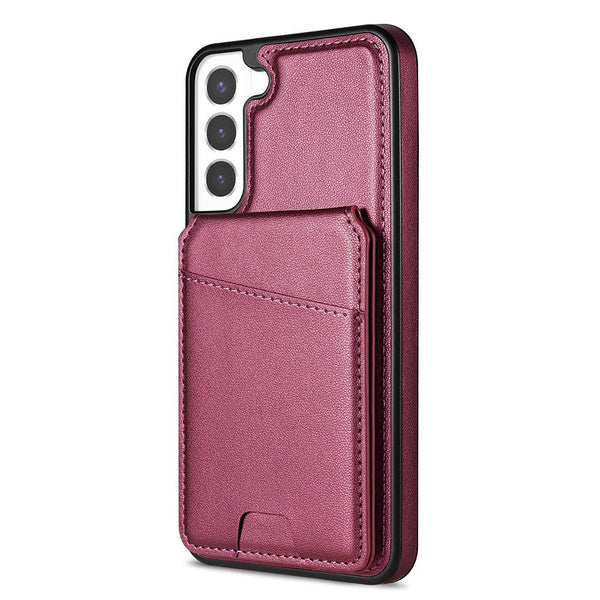 For Samsung Galaxy S22 5G Skin Feel Detachable Card Bag Magsafe Phone Case(Wine Red)