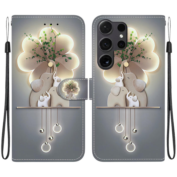 For Samsung Galaxy S22 Ultra 5G Crystal Texture Colored Drawing Leather Phone Case(Elephants)