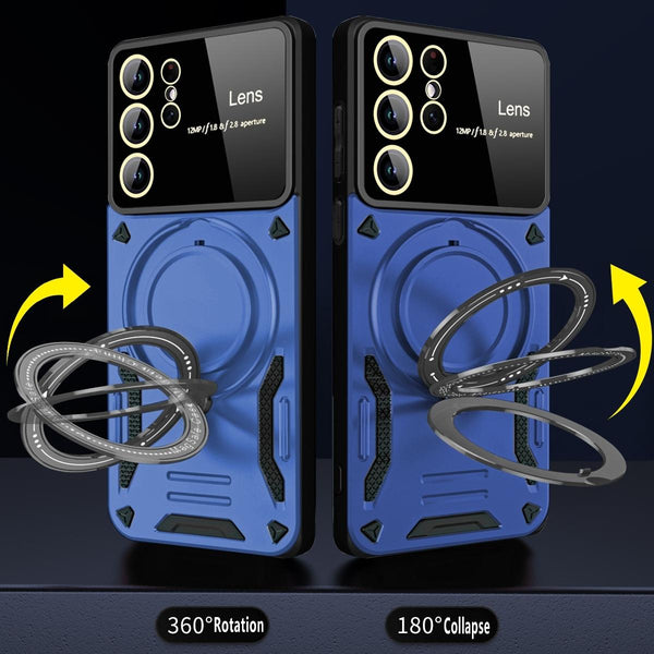 For Samsung Galaxy S22 Ultra 5G Large Window MagSafe Holder Phone Case(Red)