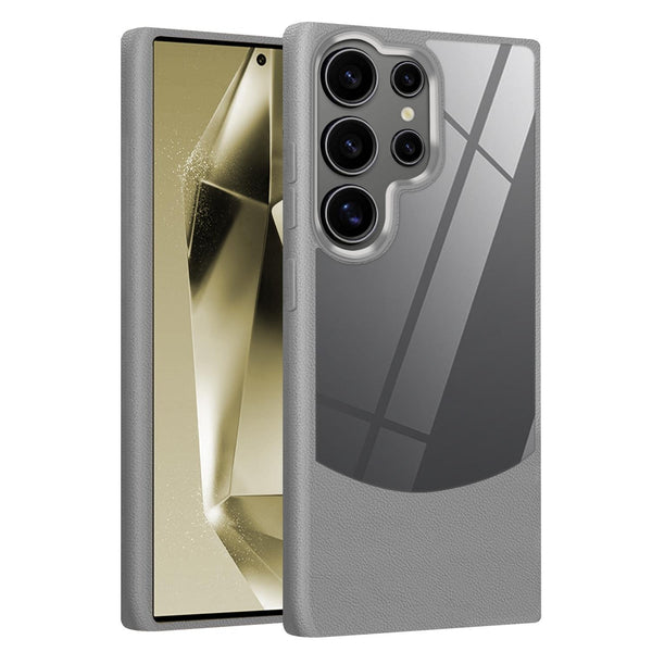 For Samsung Galaxy S22 Ultra 5G Litchi Texture TPU Hybrid Acrylic Phone Case(Grey)