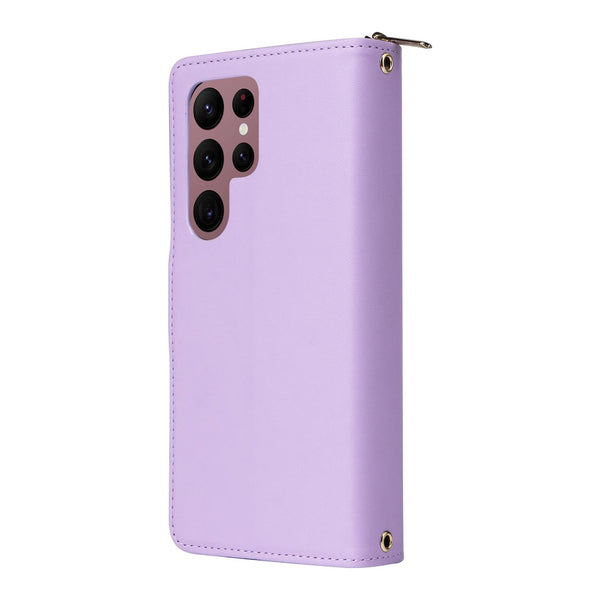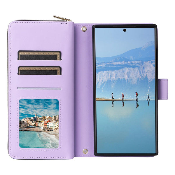 For Samsung Galaxy S22 Ultra 5G Nine-card Slots Zipper Wallet Bag Leather Phone Case(Purple)