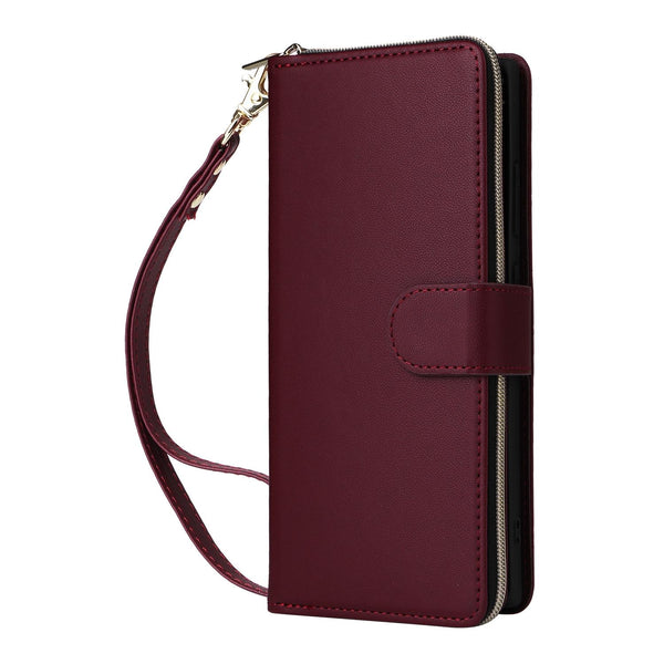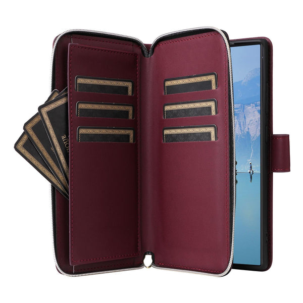 For Samsung Galaxy S22 Ultra 5G Nine-card Slots Zipper Wallet Bag Leather Phone Case(Wine Red)
