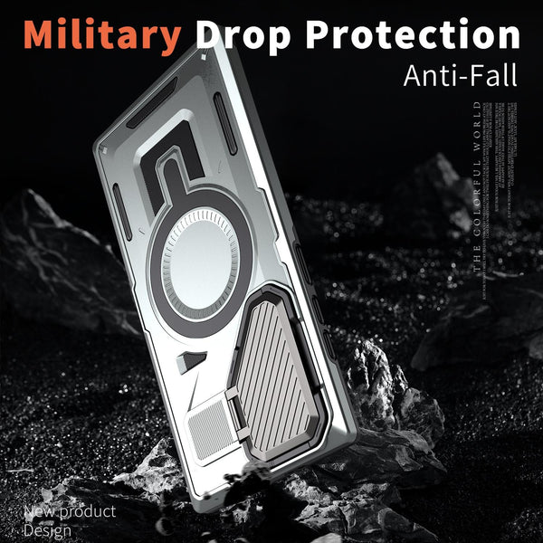 For Samsung Galaxy S22 Ultra 5G Shield Frame Holder MagSafe Phone Case(Grey)