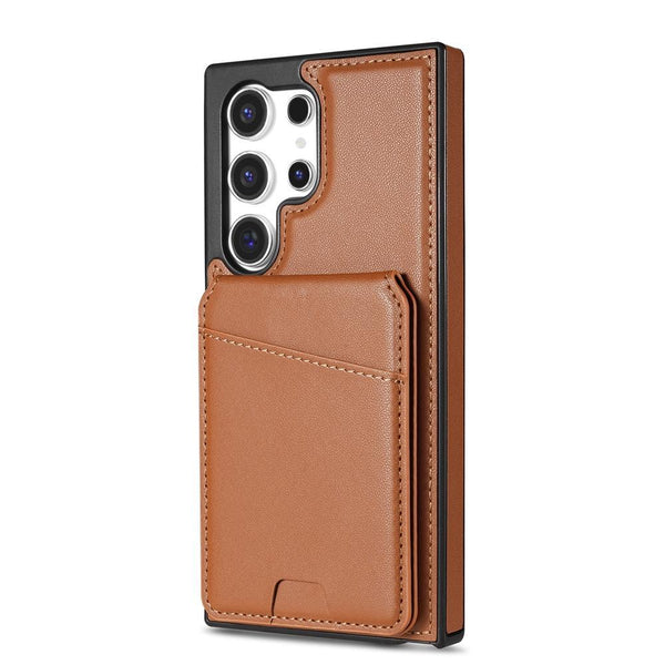 For Samsung Galaxy S22 Ultra 5G Skin Feel Detachable Card Bag Magsafe Phone Case(Brown)