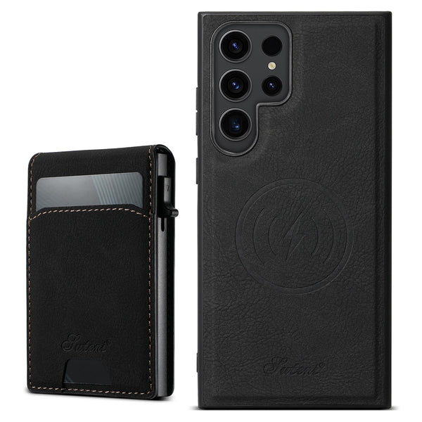For Samsung Galaxy S22 Ultra 5G Suteni H19 Litchi Texture 2-in-1 MagSafe Removable Card Case Back Phone Case(Black)