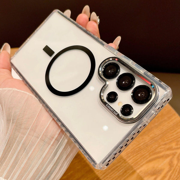 For Samsung Galaxy S22 Ultra 5G Transparent MagSafe Phone Case with Lens Film(Black)