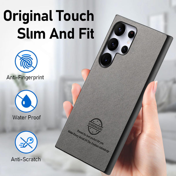 For Samsung Galaxy S22 Ultra 5G Twill Fabric Leather Skin Back Phone Case(Gray)