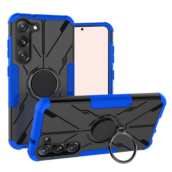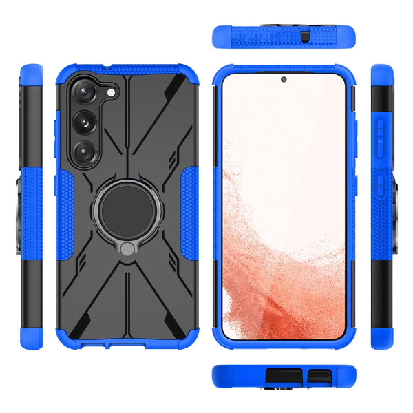 For Samsung Galaxy S23 5G Armor Bear Shockproof PC + TPU Phone Case with Ring(Blue)