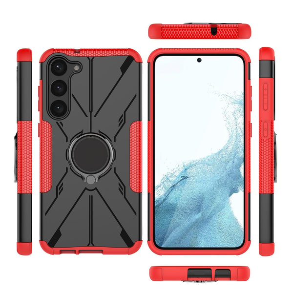 For Samsung Galaxy S23+ 5G Armor Bear Shockproof PC + TPU Phone Case with Ring(Red)