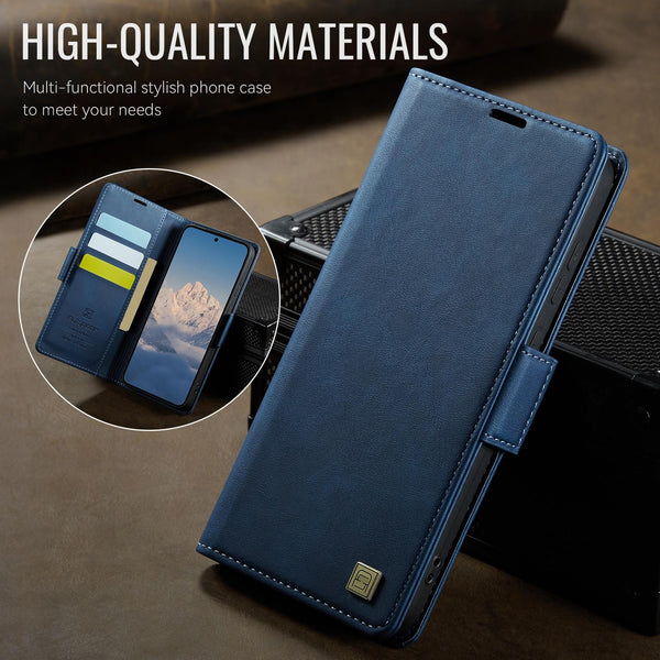For Samsung Galaxy S23 5G AutSpace A11 Side Buckle MagSafe Magnetic RFID Phone Leather Case(Blue)