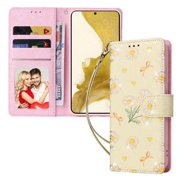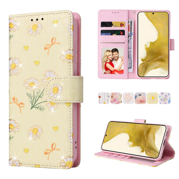 For Samsung Galaxy S23+ 5G Bronzing Painting RFID Leather Phone Case(Yellow Daisy)