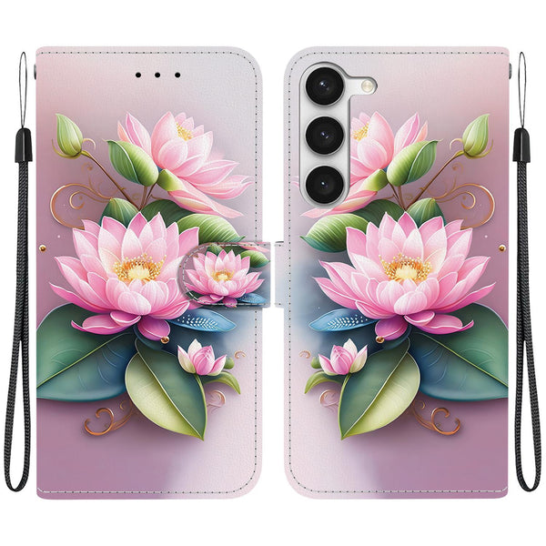 For Samsung Galaxy S23+ 5G Crystal Texture Colored Drawing Leather Phone Case(Lotus)