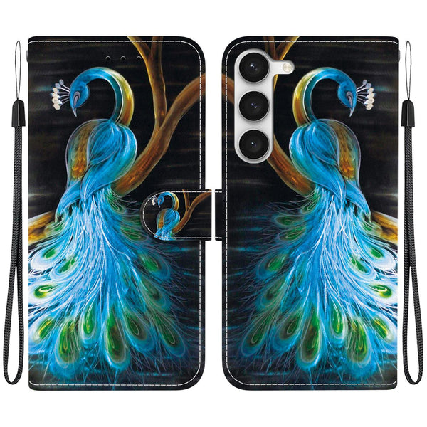 For Samsung Galaxy S23+ 5G Crystal Texture Colored Drawing Leather Phone Case(Peacock)