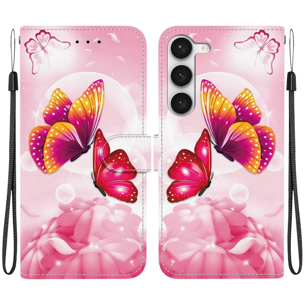 For Samsung Galaxy S23+ 5G Crystal Texture Colored Drawing Leather Phone Case(Pink Butterflies)