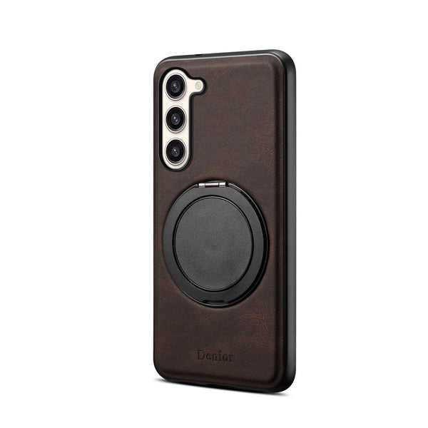 For Samsung Galaxy S23+ 5G Denior A14 Skin Feel Rotating Holder MagSafe Phone Case(Brown)