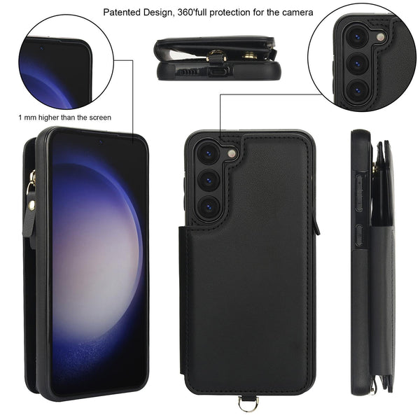 For Samsung Galaxy S23+ 5G Double Flap Zipper RFID Leather Phone Case with Short Lanyard(Black)