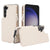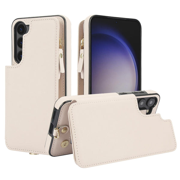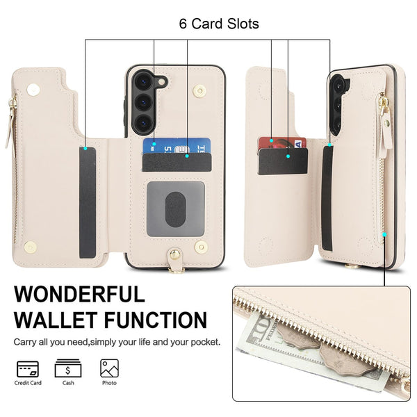 For Samsung Galaxy S23 5G Double Flap Zipper RFID Leather Phone Case with Short Lanyard(White)