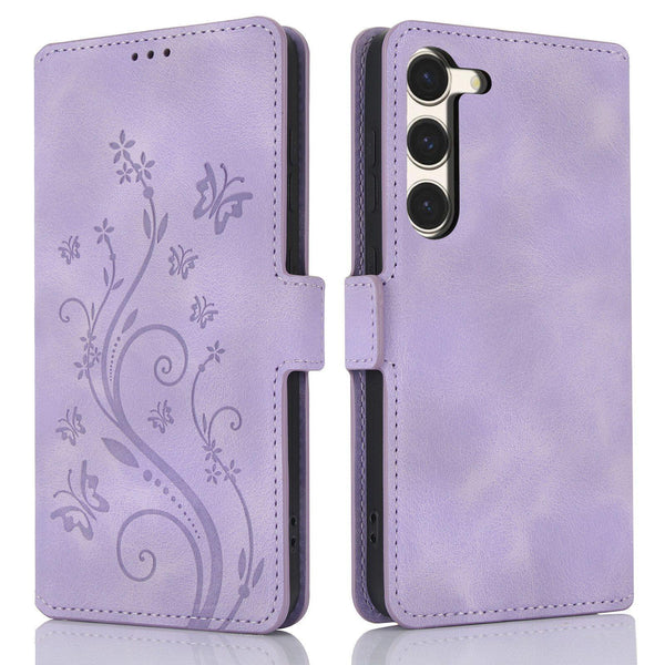 For Samsung Galaxy S23 5G Dreamy Butterfly Love Flower Embossed Leather Phone Case(Purple)