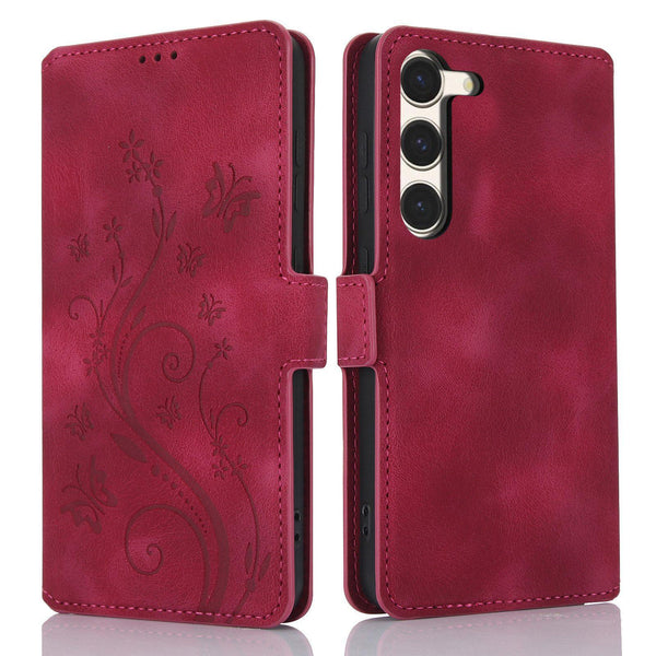 For Samsung Galaxy S23 5G Dreamy Butterfly Love Flower Embossed Leather Phone Case(Red)