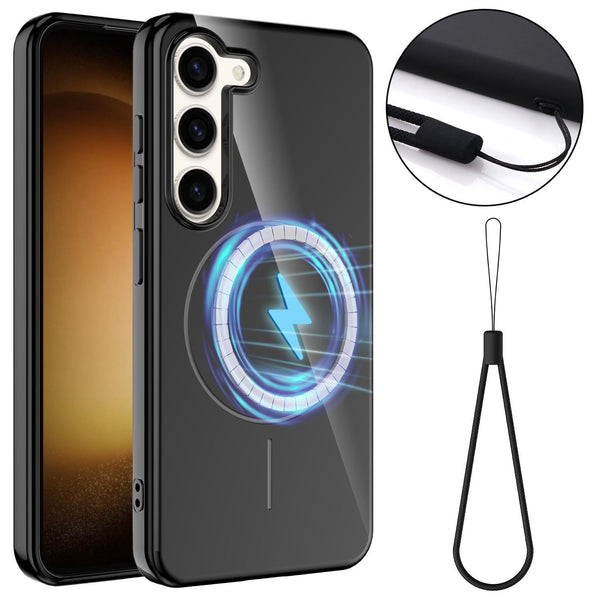 For Samsung Galaxy S23+ 5G Glossy TPU Shockproof MagSafe Phone Case with Lanyard(Black)