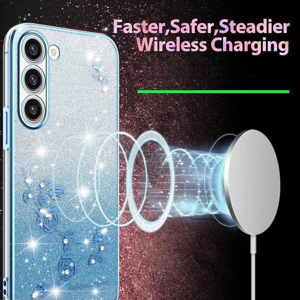 For Samsung Galaxy S23+ 5G Gradient Glitter Flower All-inclusive Phone Case(Blue)