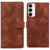 For Samsung Galaxy S23+ 5G Lace Floral Embossed Magnetic Buckle PU Phone Case With Wrist Strap(Brown)