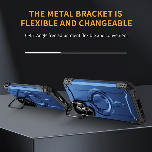 For Samsung Galaxy S23+ 5G Lens Holder MagSafe Phone Case(Blue)