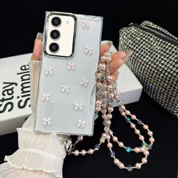 For Samsung Galaxy S23 5G Little Fresh Bow Neck Chain TPU Phone Case(Pink)