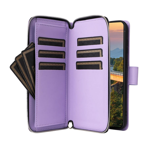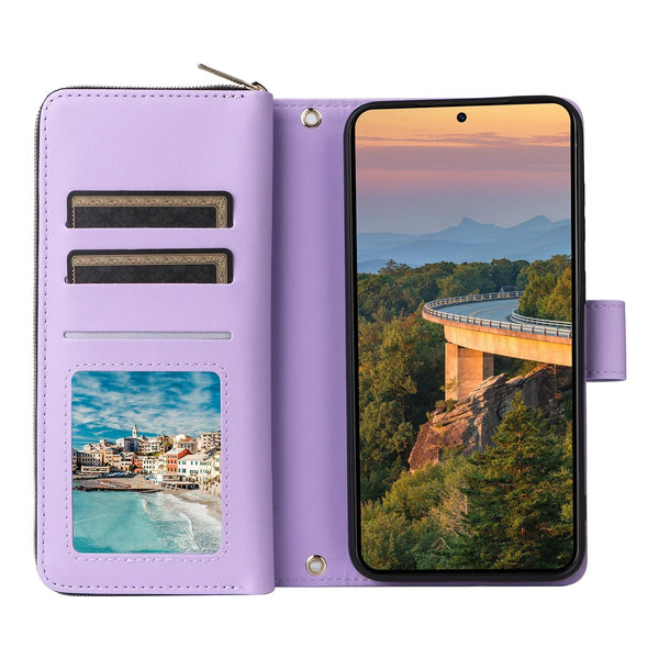 For Samsung Galaxy S23+ 5G Nine-card Slots Zipper Wallet Bag Leather Phone Case(Purple)