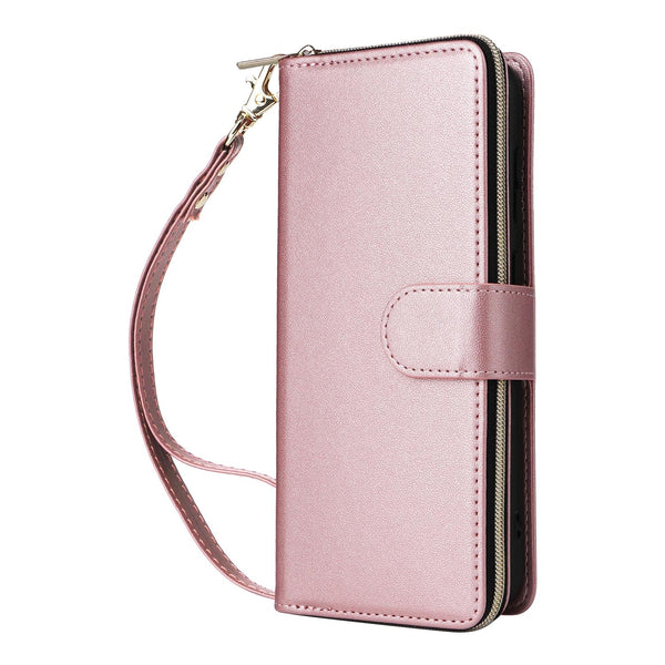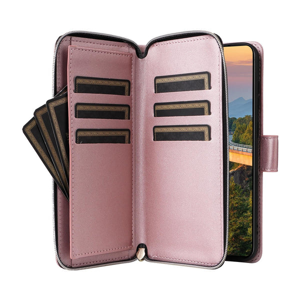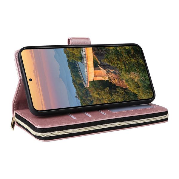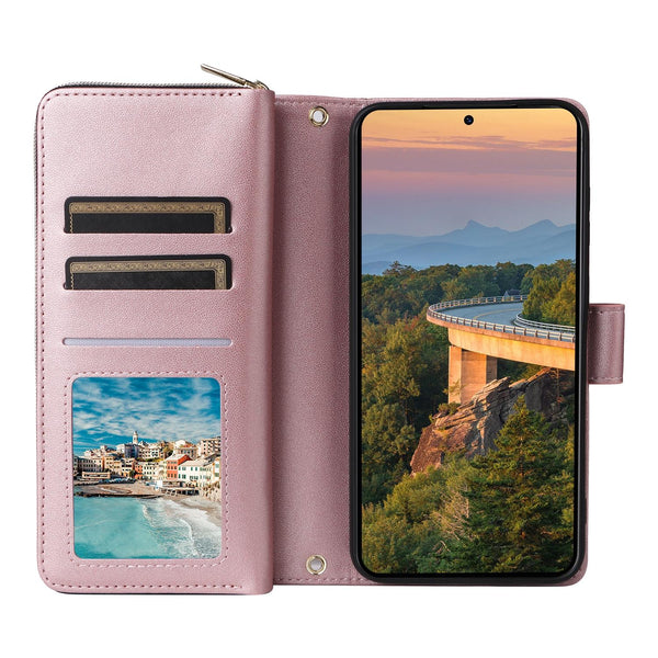 For Samsung Galaxy S23+ 5G Nine-card Slots Zipper Wallet Bag Leather Phone Case(Rose Gold)