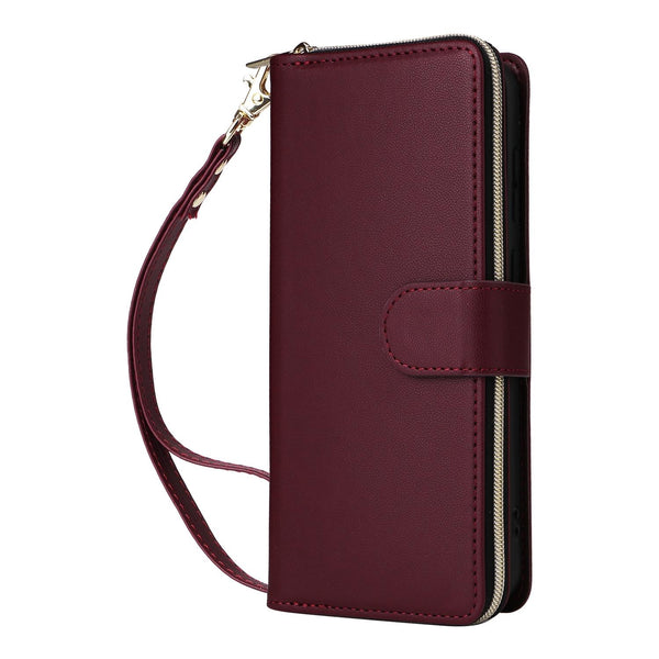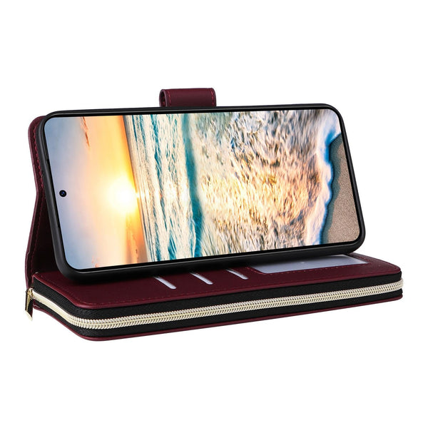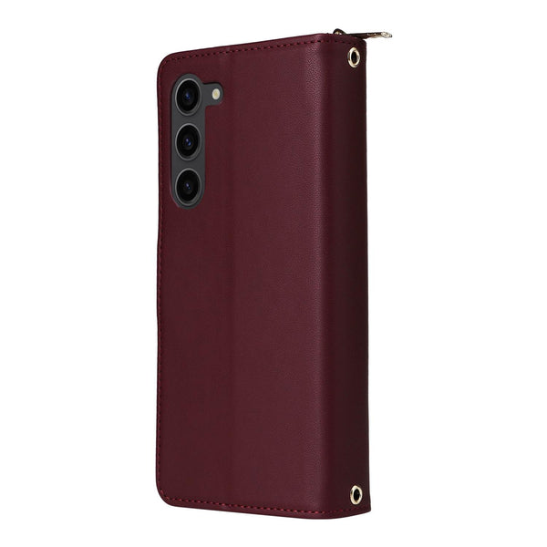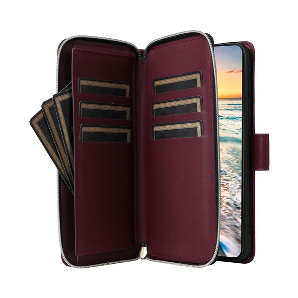 For Samsung Galaxy S23 5G Nine-card Slots Zipper Wallet Bag Leather Phone Case(Wine Red)