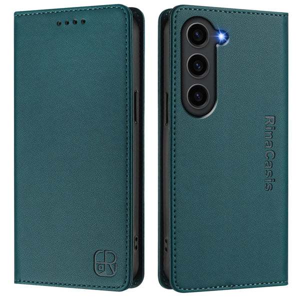 For Samsung Galaxy S23+ 5G RC01 Dual-Folded Magnetic Suction RFID Leather Phone Case(Dark Green)