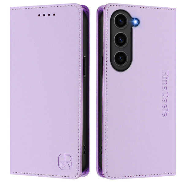 For Samsung Galaxy S23+ 5G RC01 Dual-Folded Magnetic Suction RFID Leather Phone Case(Light Purple)