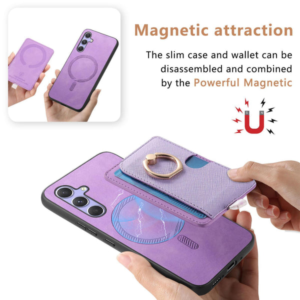 For Samsung Galaxy S23+ 5G Retro Cross Leather Ring Side Insert Card Bag MagSafe Phone Case(Purple)