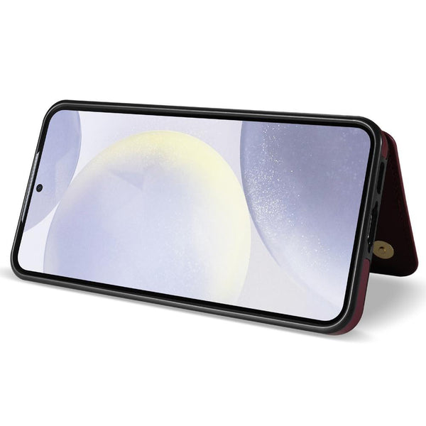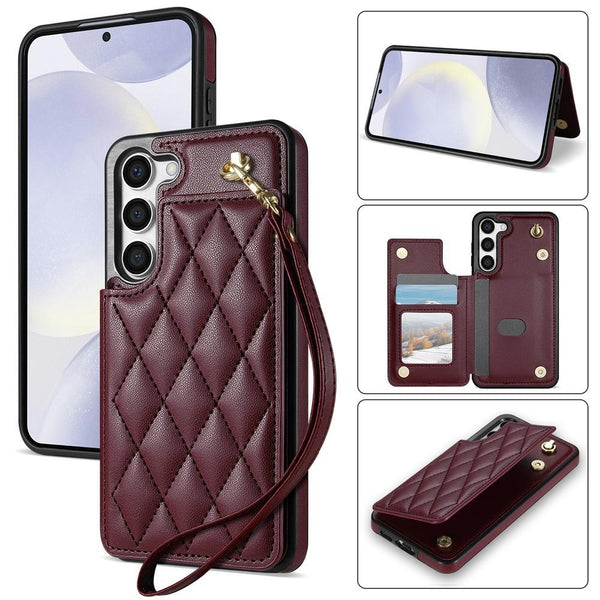 For Samsung Galaxy S23+ 5G Rhombic Dual Buckle Card Slots Phone Case with Lanyard(Wine Red)