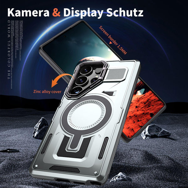 For Samsung Galaxy S23 5G Shield Hollow Frame Holder MagSafe Phone Case(Grey)