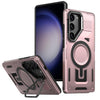 For Samsung Galaxy S23+ 5G Shield Hollow Frame Holder MagSafe Phone Case(Rose Gold)