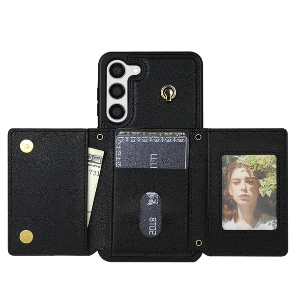 For Samsung Galaxy S23+ 5G Three Fold Card Bag Phone Case with Long Lanyard(Black)