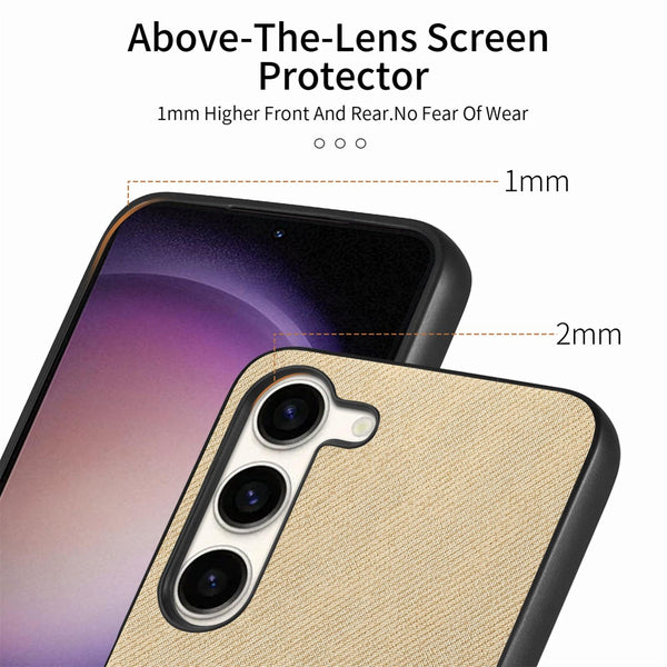 For Samsung Galaxy S23+ 5G Twill Fabric Leather Skin Back Phone Case(Khaki)
