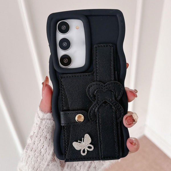 For Samsung Galaxy S23+ 5G Wristband Leather Love Holder Card Bag Phone Case(Black)