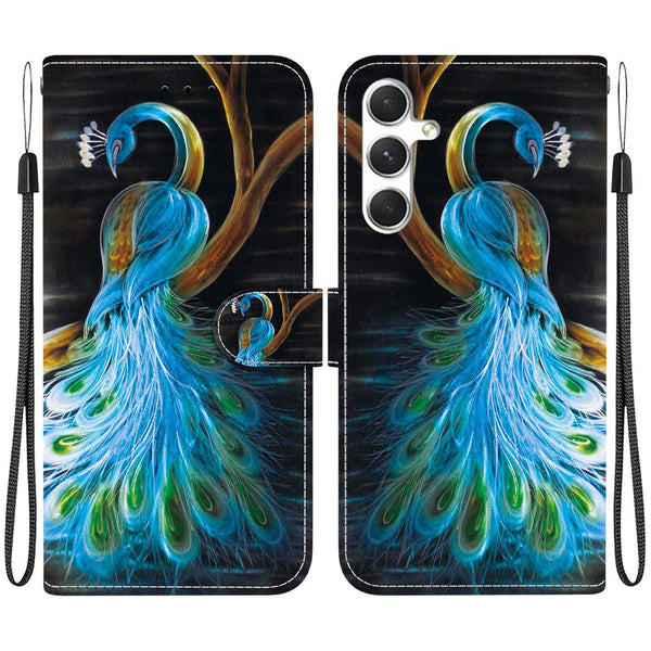 For Samsung Galaxy S23 FE 5G Crystal Texture Colored Drawing Leather Phone Case(Peacock)